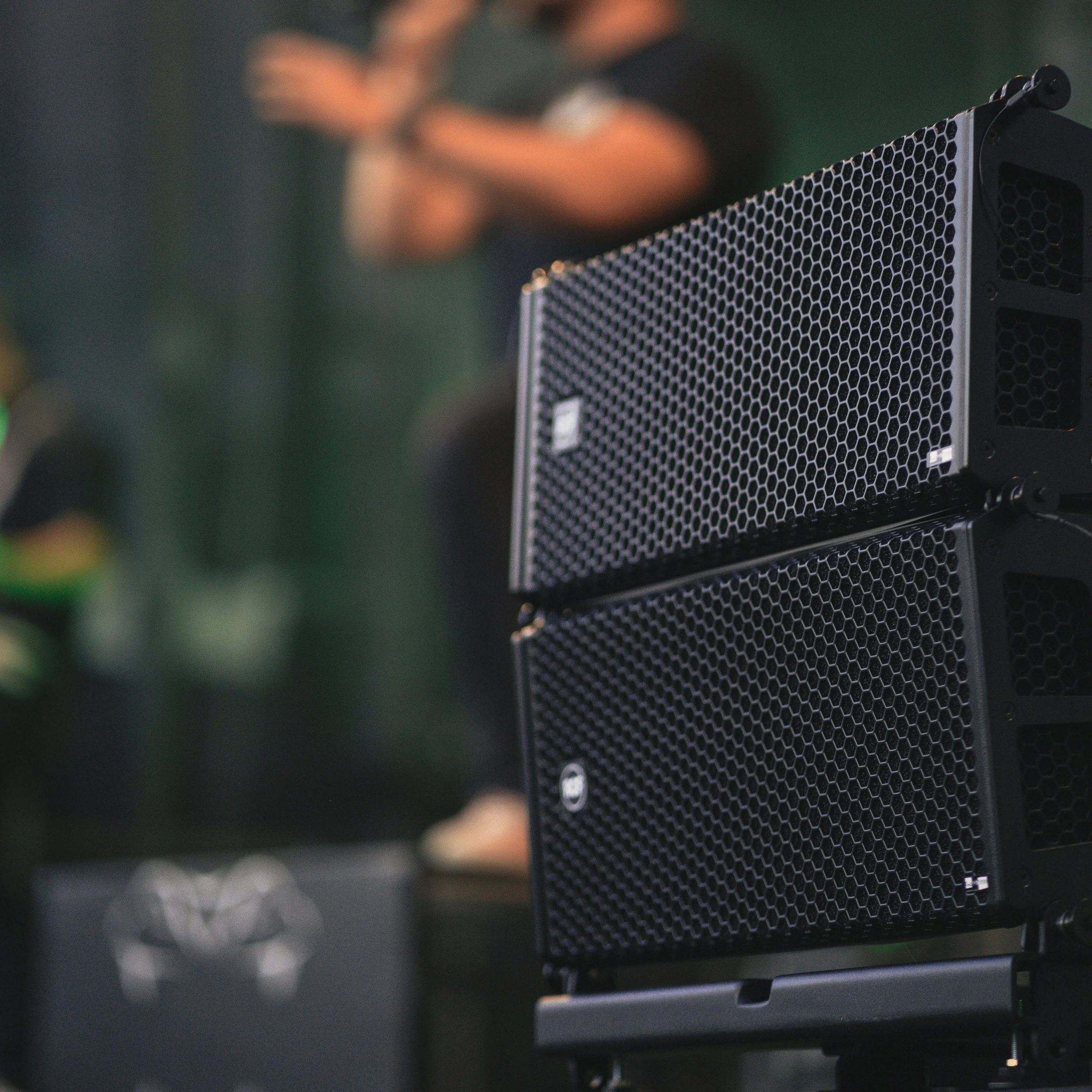 Suitable speakers for the size of the performance space (either RCF, QSC or d&b Audiotechnik)